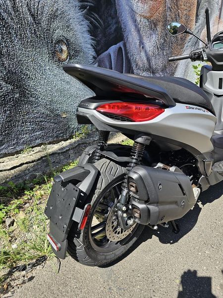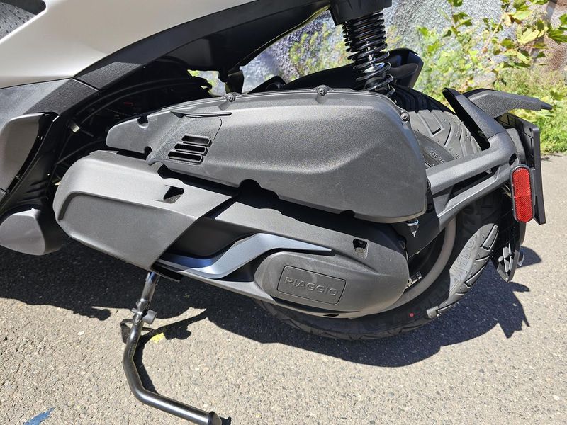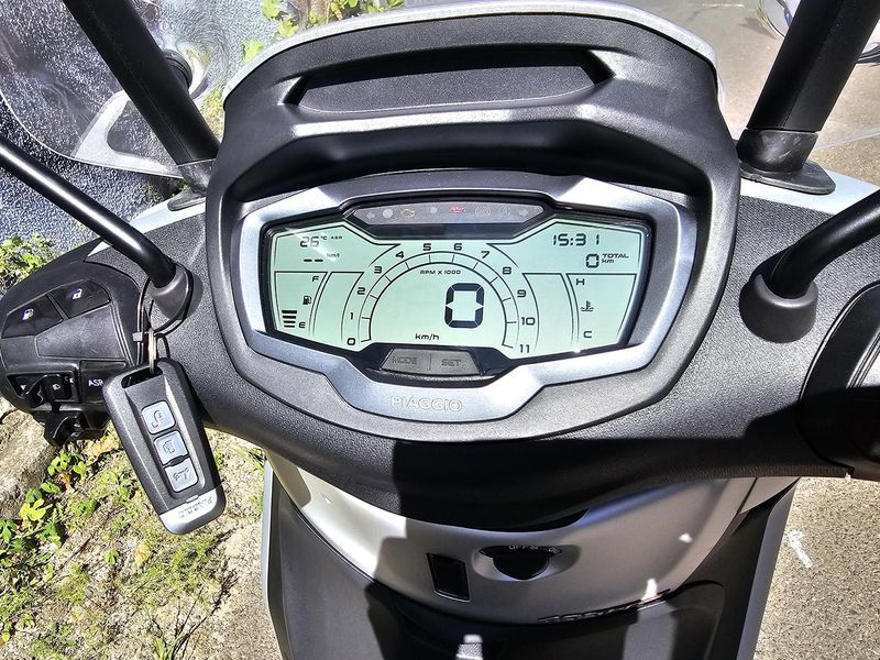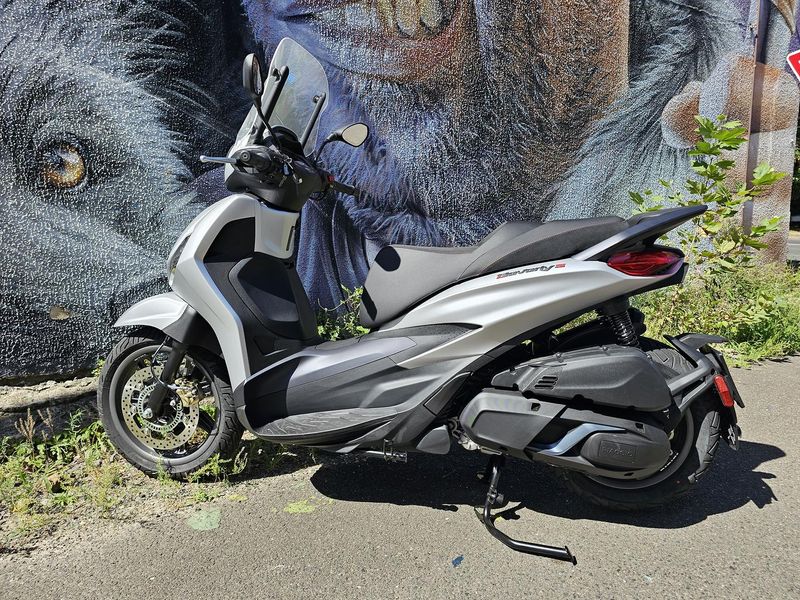 Its sporty elegance is crowned by a special fairing and dual exhaust, while the combination of larger tyres and Piaggio MIA, which comes as standard on the Beverely 400, takes the riding experience to another level.