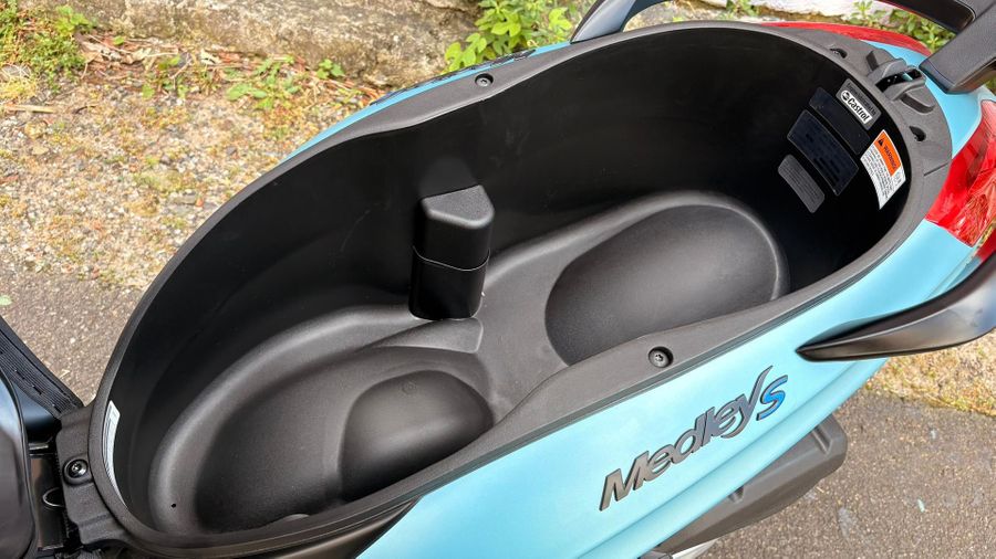 The Piaggio Medley continues to impress with its practical aspects, such as the fact that despite its compact size, it boasts unrivalled storage capacity.