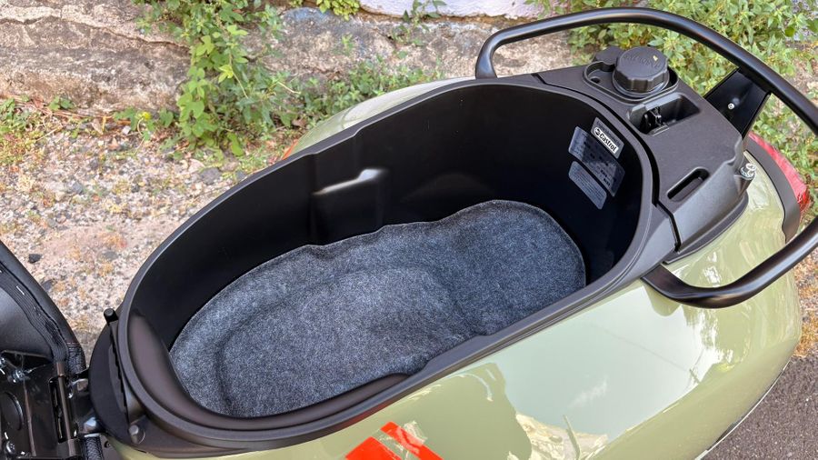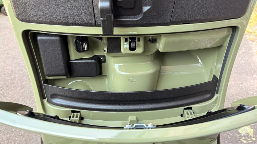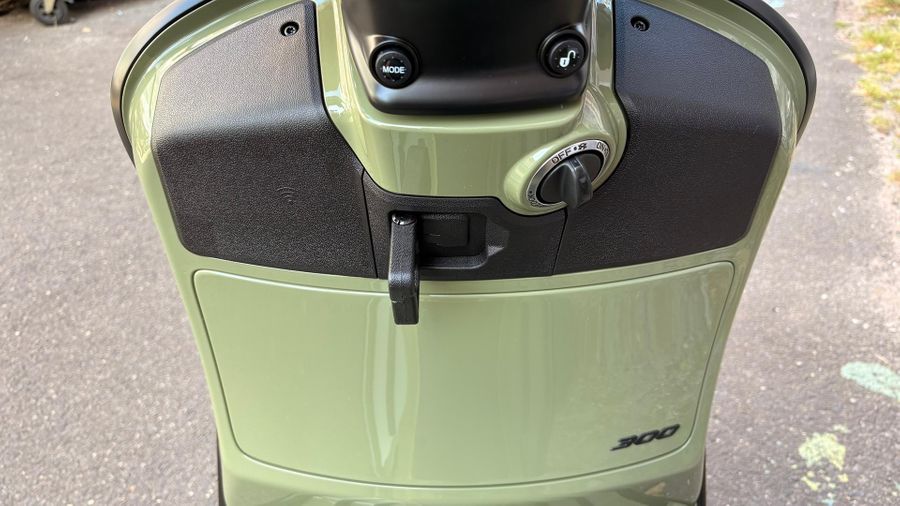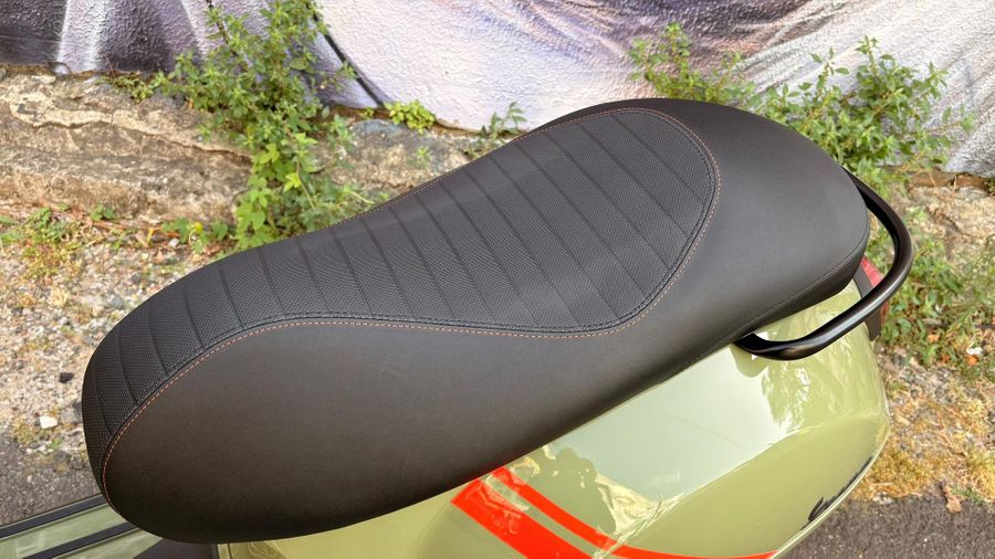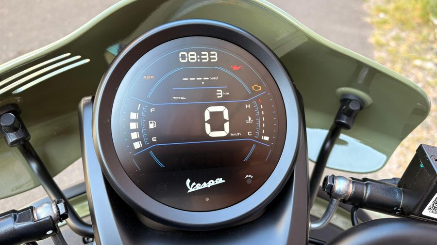 The headlight cluster is full LED and instrument panel is entirely digital, giving you access to a host of trip data which you can also view on your smartphone if you add the Vespa Mia connectivity system as an optional accessory.