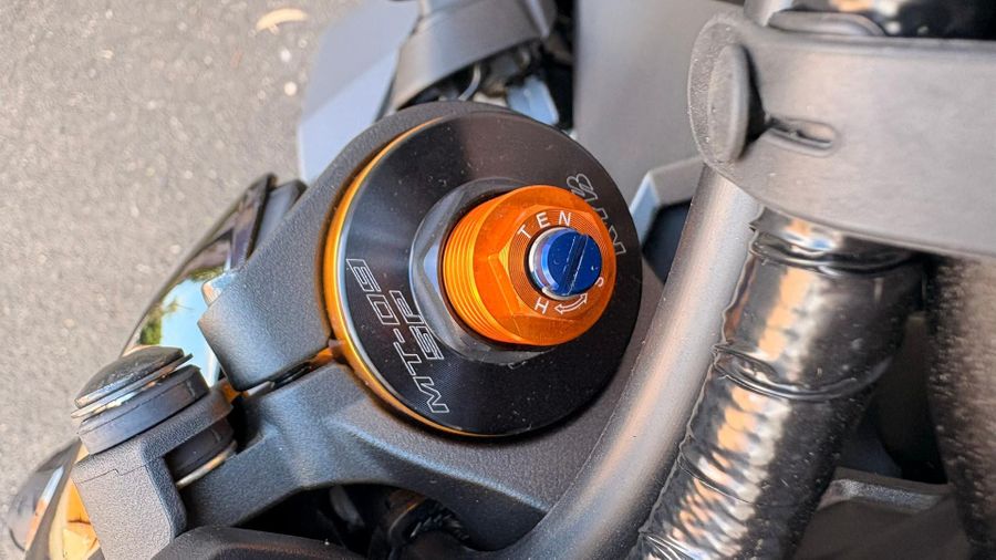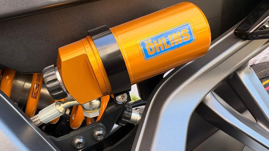 The SP-exclusive DLC-coated 41mm KYB gold front forks are paired with the fully adjustable Öhlins rear shock for the most refined Hyper Naked riding experience yet.